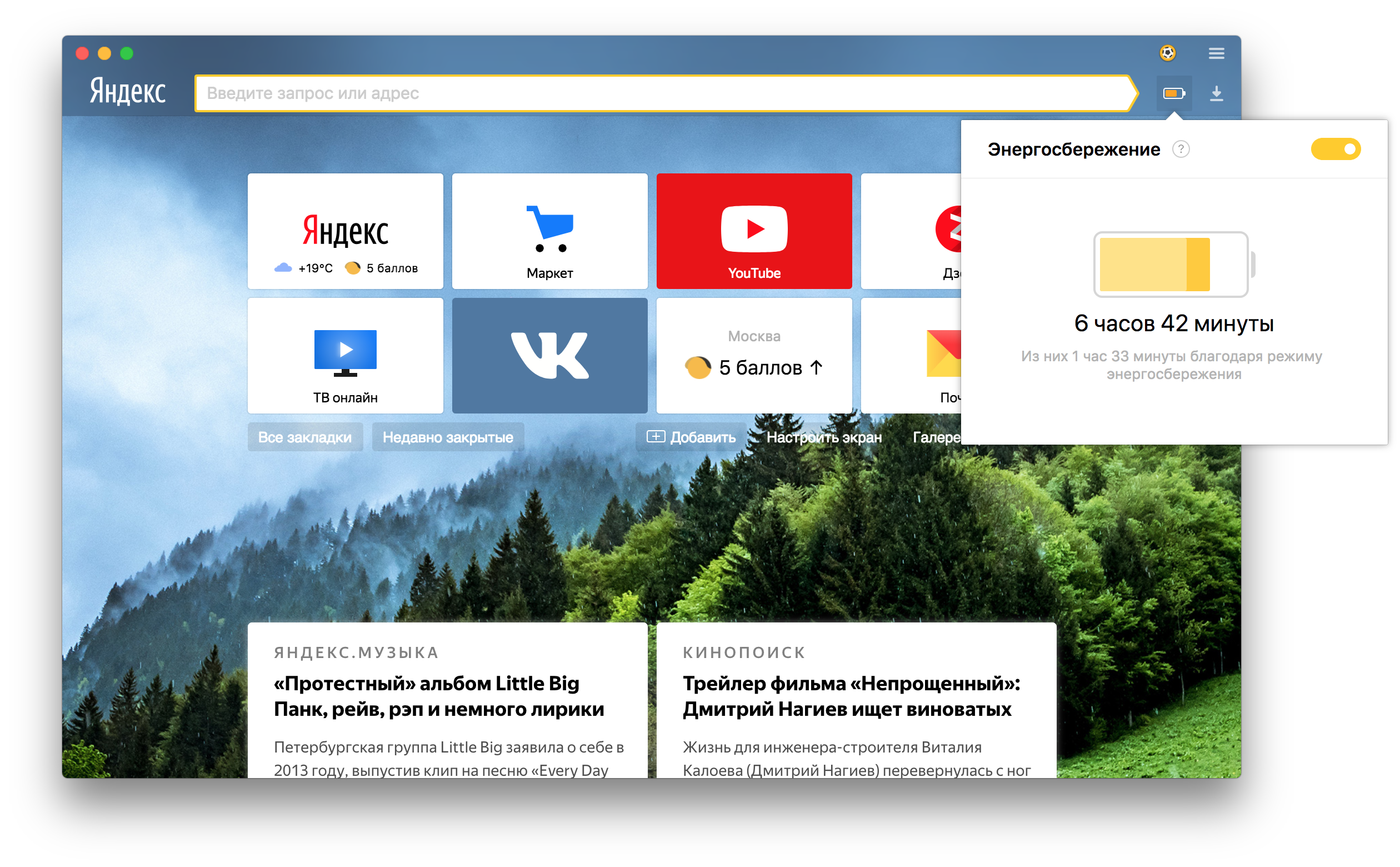 Яндекс.Браузер - фирменный браузер от компании Яндекс на базе Chromium. Обладает отличной функциональностью и обеспечивает удобный и комфортный серфинг по Сети. Браузер показывает высокую скорость загрузки и открытия страниц, а благодаря режиму Турбо экономит трафик и ускоряет загрузку даже при низкой скорости соединения.
