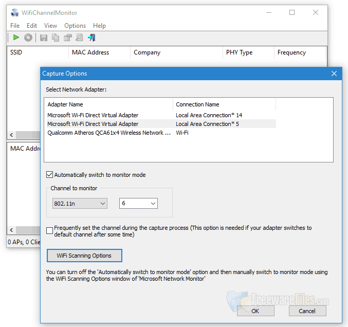 WifiChannelMonitor - системный инструмент для захвата и последующего анализа интернет-трафика WiFi на определенном канале с отображением подробной информации как о подключенных клиентах, так и не подключенных, а также точках доступа. При работе программы используется драйвер Microsoft Network Monitor. Для каждой точки доступа можно узнать SSID, MAC-адрес.
