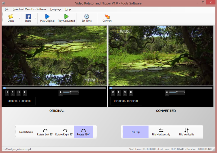 Video Rotator and Flipper - простая программа для вращения и отзеркаливания видеокартинки при воспроизведении файлов. Бывают ситуации при редактировании видеоролика, когда необходимо повернуть картинку, что особенно актуально при попытке просмотра клипа на компьютере, снятого на мобильное устройство. Обычно такой просмотр доставляет неудобства и раздражение.